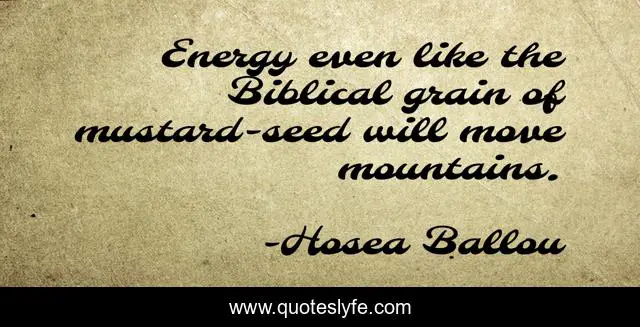 This page presents the quote "Energy even like the Biblical grain of mustard-seed will move mountains.". Author of this quote is Hosea Ballou. .