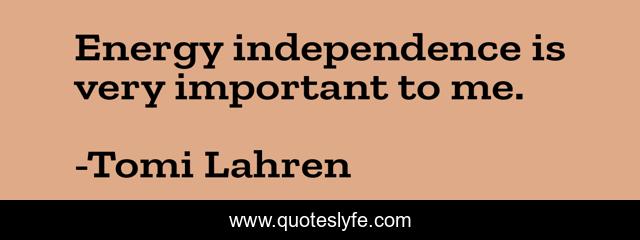 "Tomi Lahren Quotes." Quoteslyfe.com, 2025. Sat. 06 Dec. 2025. <https://www.quoteslyfe.com/quote/Energy-independence-is-very-important-to-me-299858>.