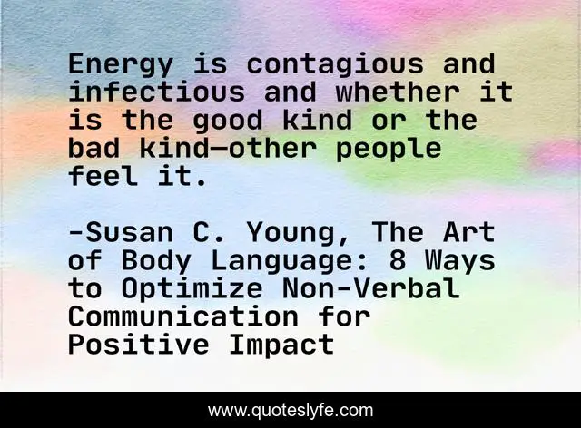 "Susan C. Young, The Art of Body Language: 8 Ways to Optimize Non-Verbal Communication for Positive Impact Quotes." Quoteslyfe.com, 2025. Sun. 07 Dec. 2025. <https://www.quoteslyfe.com/quote/Energy-is-contagious-and-infectious-and-whether-227442>.
