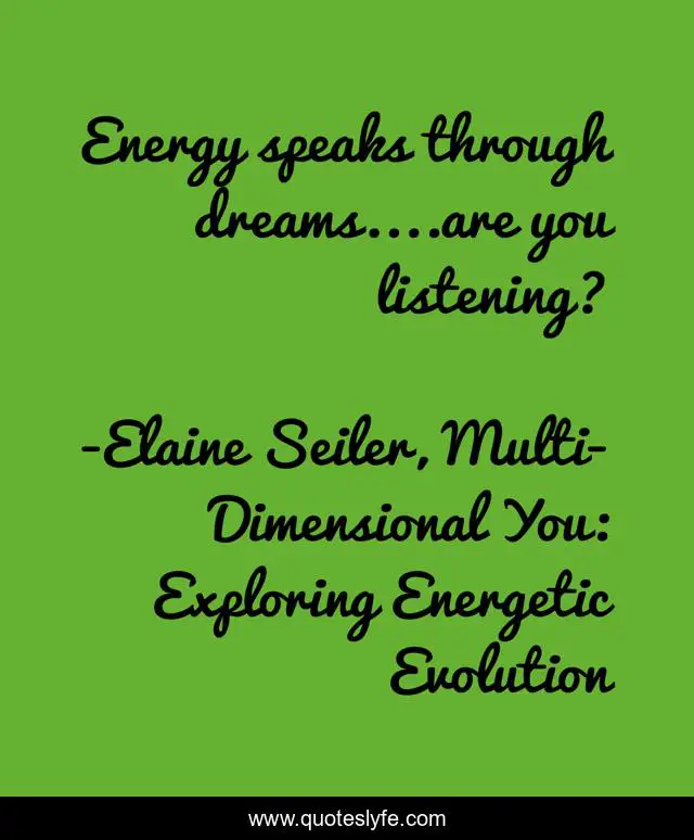 "Elaine Seiler, Multi-Dimensional You: Exploring Energetic Evolution Quotes." Quoteslyfe.com, 2025. Fri. 05 Dec. 2025. <https://www.quoteslyfe.com/quote/Energy-speaks-through-dreams-are-you-listening-216423>.