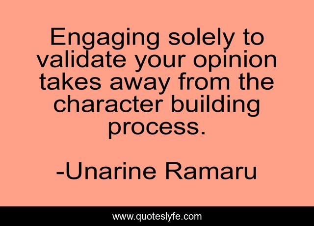 This page presents the quote "Engaging solely to validate your opinion takes away from the character building process.". Author of this quote is Unarine Ramaru. This quote is about character-development, communication, character, leadership, validation, debate,.