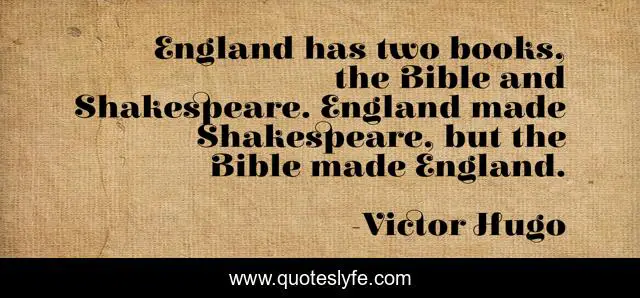 This page presents the quote "England has two books, the Bible and Shakespeare. England made Shakespeare, but the Bible made England.". Author of this quote is Victor Hugo. This quote is about bible, england, shakespeare,.