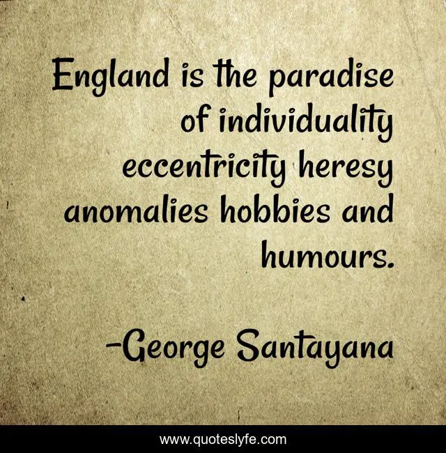 "George Santayana Quotes." Quoteslyfe.com, 2025. Mon. 08 Dec. 2025. <https://www.quoteslyfe.com/quote/England-is-the-paradise-of-individuality-eccentricity-263711>.