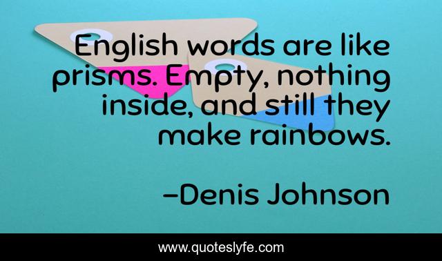 This page presents the quote "English words are like prisms. Empty, nothing inside, and still they make rainbows.". Author of this quote is Denis Johnson. .