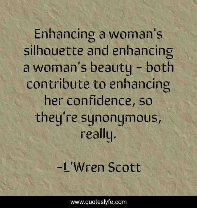 This page presents the quote "Enhancing a woman's silhouette and enhancing a woman's beauty - both contribute to enhancing her confidence, so they're synonymous, really.". Author of this quote is L'Wren Scott. This quote is about confidence, woman, her,.