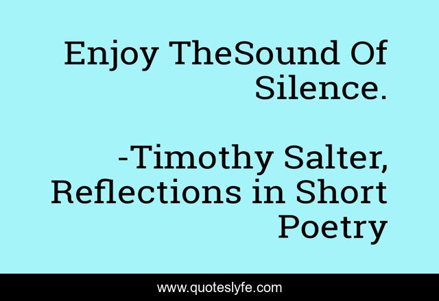 This page presents the quote "Enjoy TheSound Of Silence.". Author of this quote is Timothy Salter, Reflections in Short Poetry. This quote is about relaxing-the-mind, short-poetry, poetry, silence,.