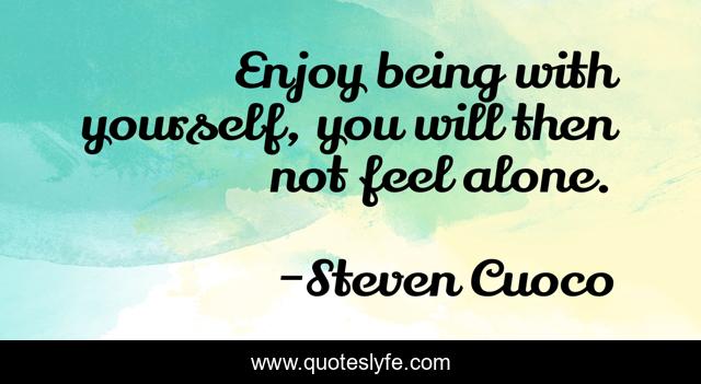 This page presents the quote "Enjoy being with yourself, you will then not feel alone.". Author of this quote is Steven Cuoco. This quote is about words-of-wisdom, inspirational, quote-of-the-day, life-lessons, quotes-about-life, enthusiasm, quotes-to-live-by, brainy-words,.