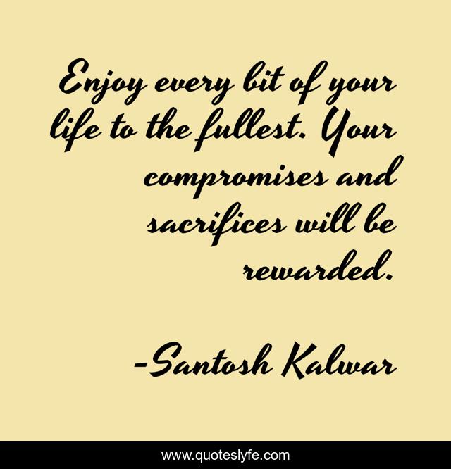 This page presents the quote "Enjoy every bit of your life to the fullest. Your compromises and sacrifices will be rewarded.". Author of this quote is Santosh Kalwar. This quote is about enjoy, life, life-lessons,.