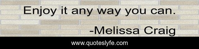 "Melissa Craig Quotes." Quoteslyfe.com, 2025. Fri. 05 Dec. 2025. <https://www.quoteslyfe.com/quote/Enjoy-it-any-way-you-can-214163>.