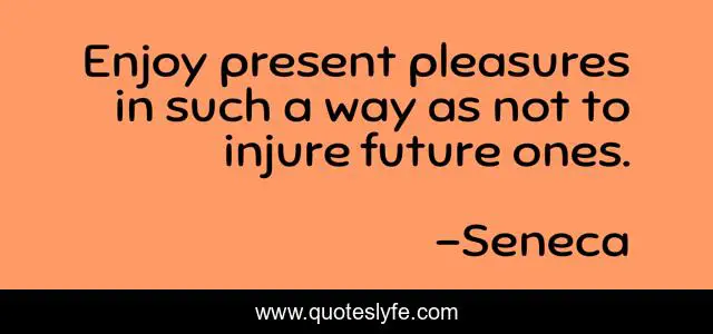 This page presents the quote "Enjoy present pleasures in such a way as not to injure future ones.". Author of this quote is Seneca. This quote is about enjoy, present, way,.