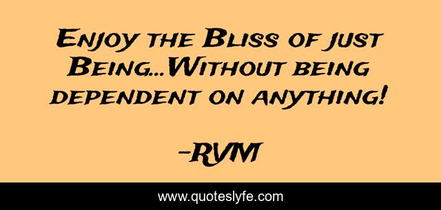 This page presents the quote "Enjoy the Bliss of just Being…Without being dependent on anything!". Author of this quote is RVM. This quote is about motivation, inspiration,.