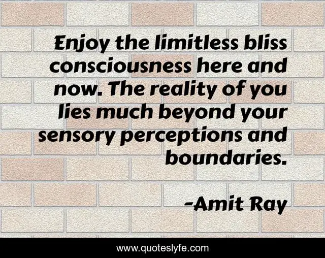 "Amit Ray Quotes." Quoteslyfe.com, 2025. Sun. 07 Dec. 2025. <https://www.quoteslyfe.com/quote/Enjoy-the-limitless-bliss-consciousness-here-and-4880>.