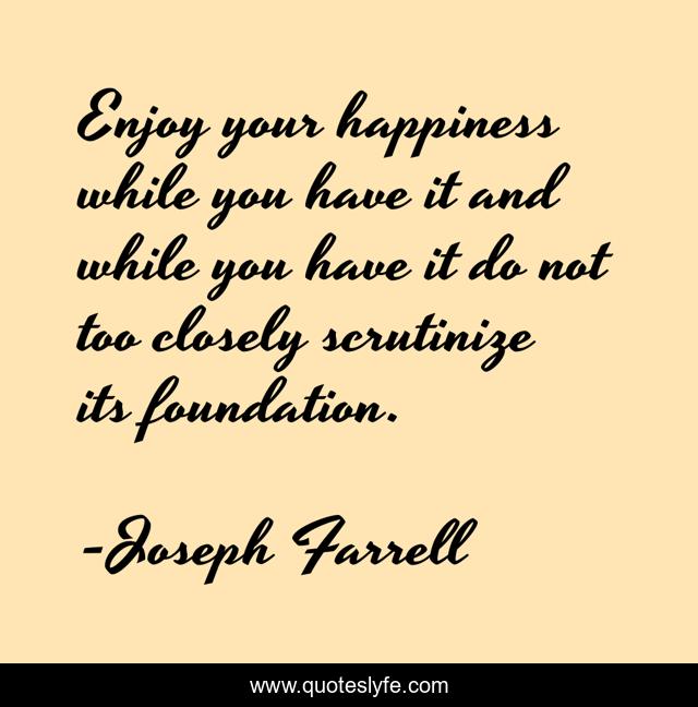 This page presents the quote "Enjoy your happiness while you have it and while you have it do not too closely scrutinize its foundation.". Author of this quote is Joseph Farrell. .