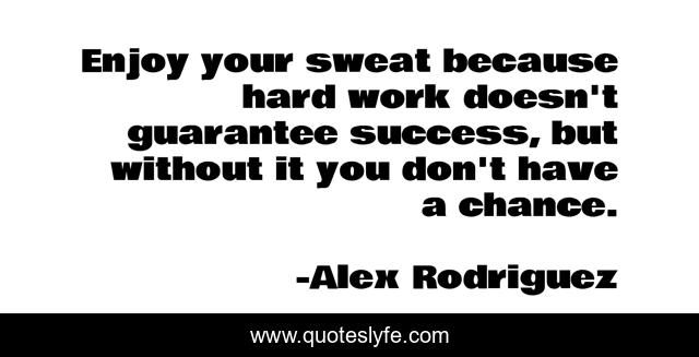 This page presents the quote "Enjoy your sweat because hard work doesn't guarantee success, but without it you don't have a chance.". Author of this quote is Alex Rodriguez. This quote is about enjoy, success, hard work,.