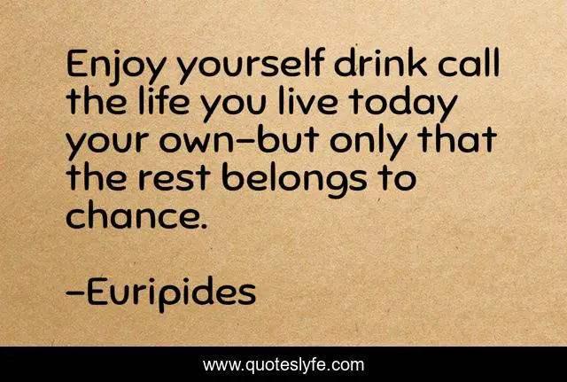 This page presents the quote "Enjoy yourself drink call the life you live today your own-but only that the rest belongs to chance.". Author of this quote is Euripides. .