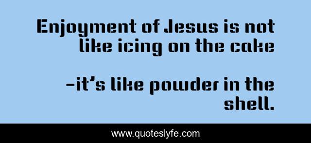 This page presents the quote "Enjoyment of Jesus is not like icing on the cake". Author of this quote is it’s like powder in the shell.. .