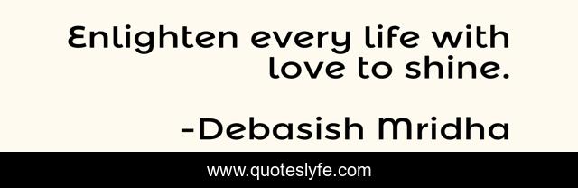 This page presents the quote "Enlighten every life with love to shine.". Author of this quote is Debasish Mridha. This quote is about love, love-to-shine, philosophy, debasish-mridha, enlighten-every-life, quotes, inspirational, enthusiasm, debasish-mridha-m-d,.