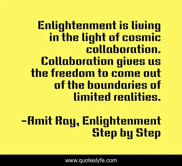 Enlightenment is living in the light of cosmic collaboration. Collaboration gives us the freedom to come out of the boundaries of limited realities.