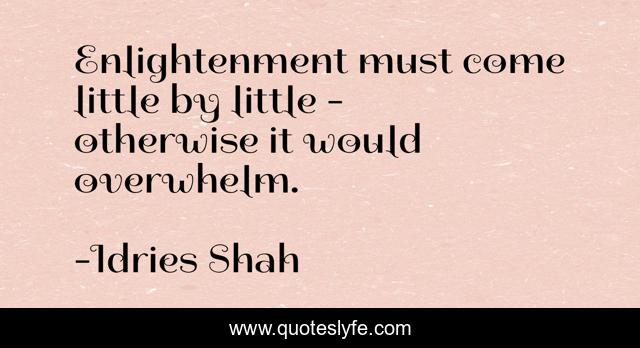 "Idries Shah Quotes." Quoteslyfe.com, 2025. Mon. 08 Dec. 2025. <https://www.quoteslyfe.com/quote/Enlightenment-must-come-little-by-little-otherwise-199200>.