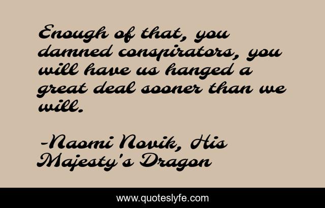 "Naomi Novik, His Majesty's Dragon Quotes." Quoteslyfe.com, 2025. Fri. 05 Dec. 2025. <https://www.quoteslyfe.com/quote/Enough-of-that-you-damned-conspirators-you-55921>.