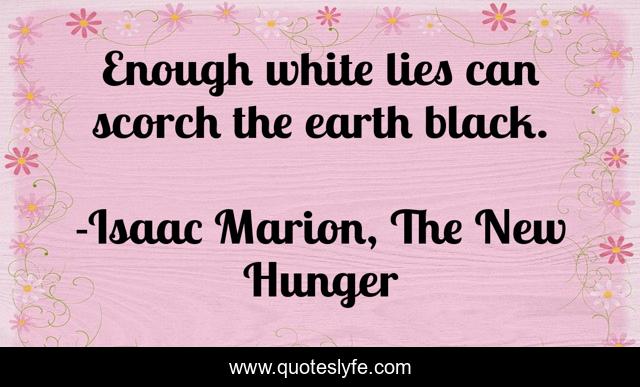 This page presents the quote "Enough white lies can scorch the earth black.". Author of this quote is Isaac Marion, The New Hunger. .