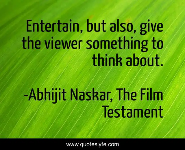 "Abhijit Naskar, The Film Testament Quotes." Quoteslyfe.com, 2025. Fri. 05 Dec. 2025. <https://www.quoteslyfe.com/quote/Entertain-but-also-give-the-viewer-something-210681>.