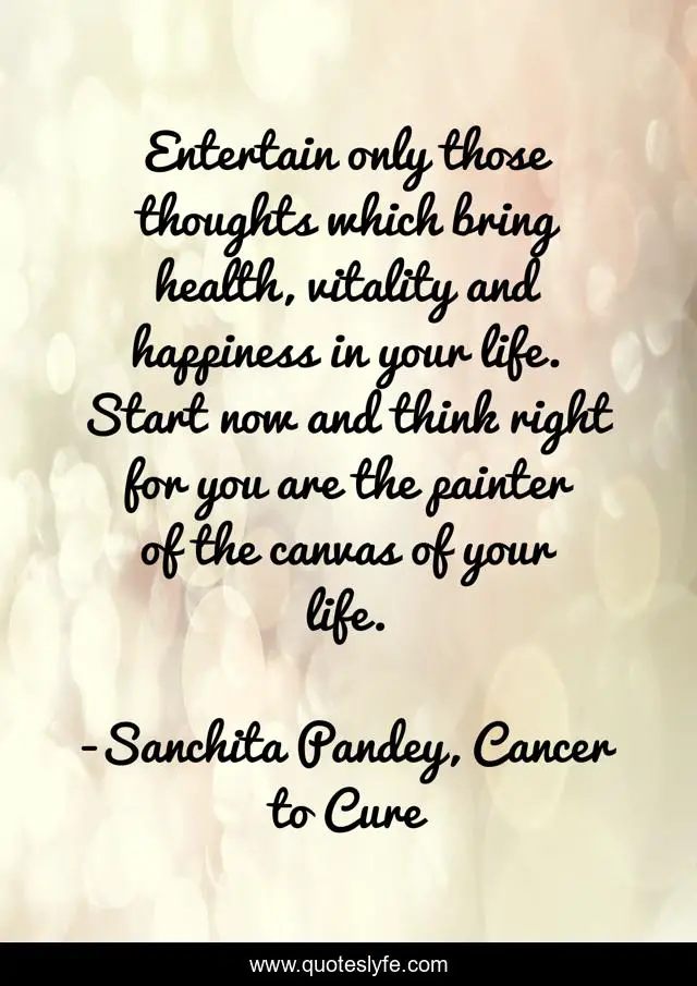"Sanchita Pandey, Cancer to Cure Quotes." Quoteslyfe.com, 2025. Sat. 06 Dec. 2025. <https://www.quoteslyfe.com/quote/Entertain-only-those-thoughts-which-bring-health-166371>.