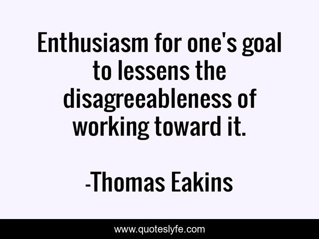 This page presents the quote "Enthusiasm for one's goal to lessens the disagreeableness of working toward it.". Author of this quote is Thomas Eakins. .