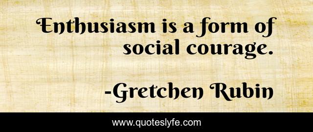 This page presents the quote "Enthusiasm is a form of social courage.". Author of this quote is Gretchen Rubin. This quote is about enthusiasm, form, social,.