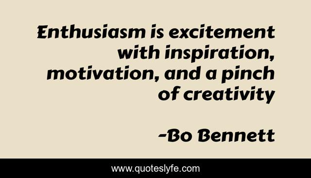 This page presents the quote "Enthusiasm is excitement with inspiration, motivation, and a pinch of creativity". Author of this quote is Bo Bennett. This quote is about motivation, creativity,.