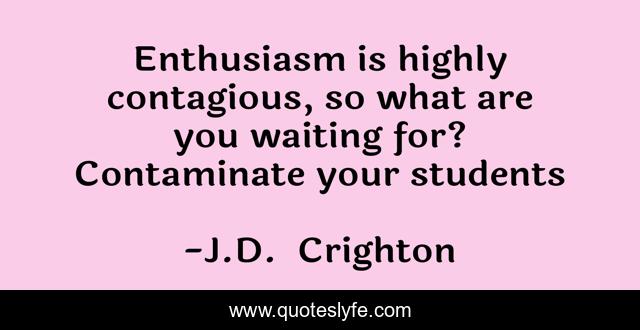 This page presents the quote "Enthusiasm is highly contagious, so what are you waiting for? Contaminate your students". Author of this quote is J.D. Crighton. This quote is about motivation, positive, motivational, confidence, optimistic, enthusiasm, teaching,.
