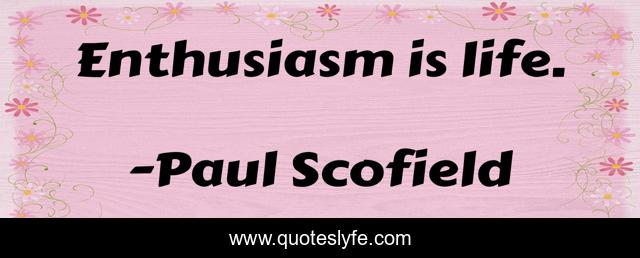 This page presents the quote "Enthusiasm is life.". Author of this quote is Paul Scofield. .