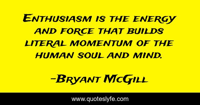 This page presents the quote "Enthusiasm is the energy and force that builds literal momentum of the human soul and mind.". Author of this quote is Bryant McGill. This quote is about enthusiasm, energy, force, momentum, success,.