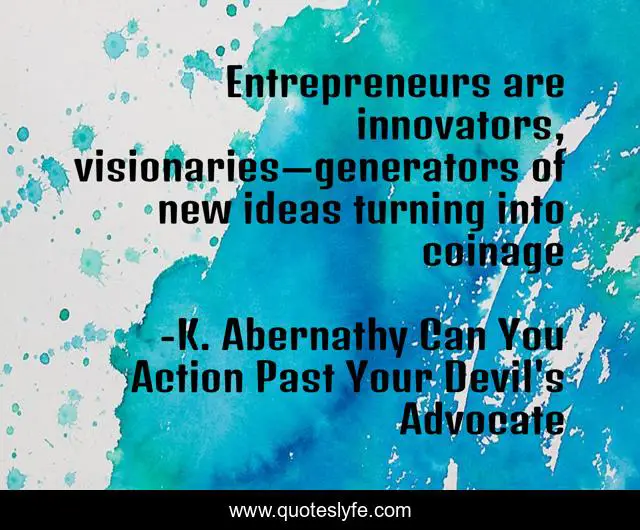 "K. Abernathy Can You Action Past Your Devil's Advocate Quotes." Quoteslyfe.com, 2025. Fri. 05 Dec. 2025. <https://www.quoteslyfe.com/quote/Entrepreneurs-are-innovators-visionaries-generators-of-new-88810>.