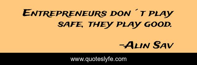 This page presents the quote "Entrepreneurs don´t play safe, they play good.". Author of this quote is Alin Sav. .