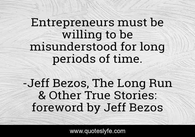 "Jeff Bezos, The Long Run & Other True Stories: foreword by Jeff Bezos Quotes." Quoteslyfe.com, 2025. Fri. 05 Dec. 2025. <https://www.quoteslyfe.com/quote/Entrepreneurs-must-be-willing-to-be-misunderstood-215154>.