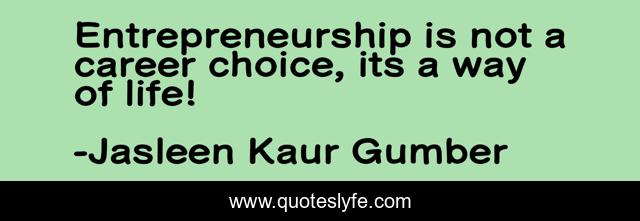 This page presents the quote "Entrepreneurship is not a career choice, its a way of life!". Author of this quote is Jasleen Kaur Gumber. This quote is about entrepreneur, entrepreneurial, life, entrepreneurship,.