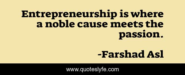 This page presents the quote "Entrepreneurship is where a noble cause meets the passion.". Author of this quote is Farshad Asl. This quote is about passion, noble-cause, entrepreneurship,.