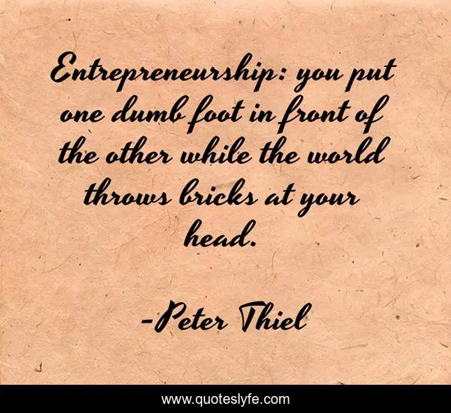 "Peter Thiel Quotes." Quoteslyfe.com, 2025. Mon. 08 Dec. 2025. <https://www.quoteslyfe.com/quote/Entrepreneurship-you-put-one-dumb-foot-in-187461>.