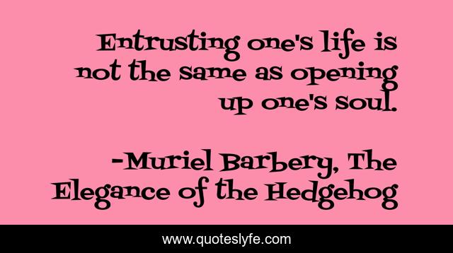 This page presents the quote "Entrusting one's life is not the same as opening up one's soul.". Author of this quote is Muriel Barbery, The Elegance of the Hedgehog. .