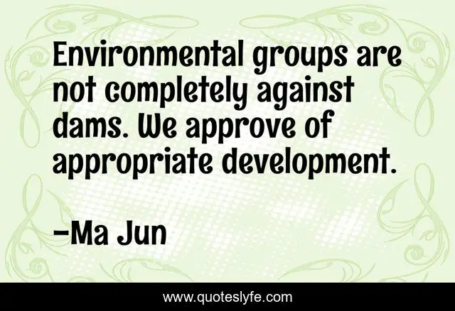 This page presents the quote "Environmental groups are not completely against dams. We approve of appropriate development.". Author of this quote is Ma Jun. This quote is about development, appropriate,.