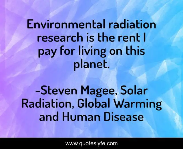 "Steven Magee, Solar Radiation, Global Warming and Human Disease Quotes." Quoteslyfe.com, 2025. Mon. 08 Dec. 2025. <https://www.quoteslyfe.com/quote/Environmental-radiation-research-is-the-rent-I-105534>.