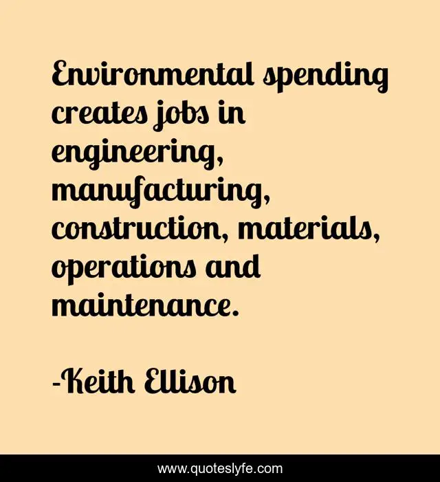 This page presents the quote "Environmental spending creates jobs in engineering, manufacturing, construction, materials, operations and maintenance.". Author of this quote is Keith Ellison. This quote is about engineering, construction,.