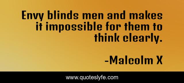 This page presents the quote "Envy blinds men and makes it impossible for them to think clearly.". Author of this quote is Malcolm X. This quote is about impossible, envy, think,.