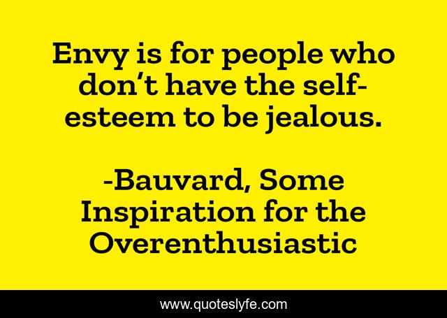 This page presents the quote "Envy is for people who don’t have the self-esteem to be jealous.". Author of this quote is Bauvard, Some Inspiration for the Overenthusiastic. This quote is about funny, envy, comedy, humor, jealousy,.