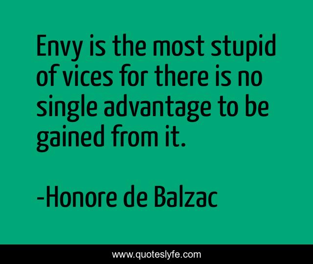 This page presents the quote "Envy is the most stupid of vices for there is no single advantage to be gained from it.". Author of this quote is Honore de Balzac. .