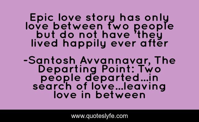 This page presents the quote "Epic love story has only love between two people but do not have 'they lived happily ever after". Author of this quote is Santosh Avvannavar, The Departing Point: Two people departed...in search of love...leaving love in between. This quote is about epic-love, happy-ending, love, love-story, affection,.
