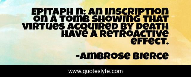 This page presents the quote "Epitaph n: an inscription on a tomb showing that virtues acquired by death have a retroactive effect.". Author of this quote is Ambrose Bierce. This quote is about death, dying,.