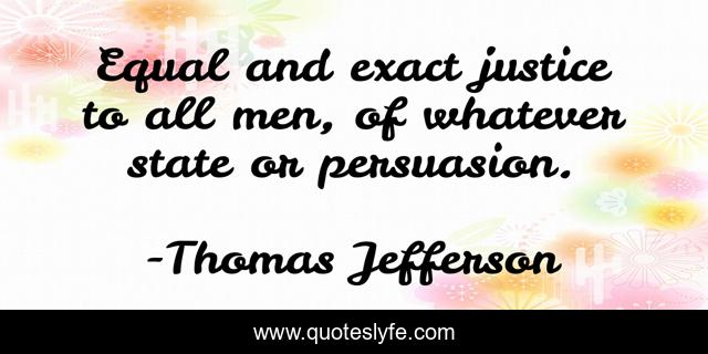 This page presents the quote "Equal and exact justice to all men, of whatever state or persuasion.". Author of this quote is Thomas Jefferson. This quote is about justice, equality,.