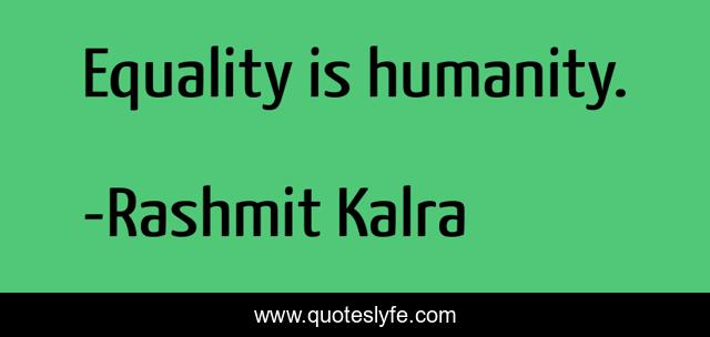 This page presents the quote "Equality is humanity.". Author of this quote is Rashmit Kalra. This quote is about social-justice, equality, humanity,.